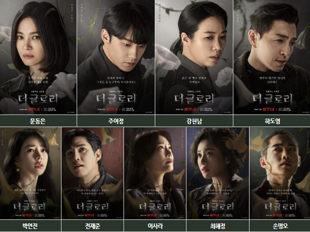 특히 캐릭터 포스터 속 송혜교는 따로 캐릭터 포스터 없이 모든 캐릭터 포스터에서 각 인물과 함께한다. 특히 포스터 속 송혜교는 임지연의 머리채를 잡고 있는가 하면, 전재준의 경우 ‘비릿하던 그 눈’이라는 문구와 함께 연진과 달리 눈에서 눈물이 흐르고 있어 강렬한 복수를 할 것으로 기대가 더욱 고조된다.