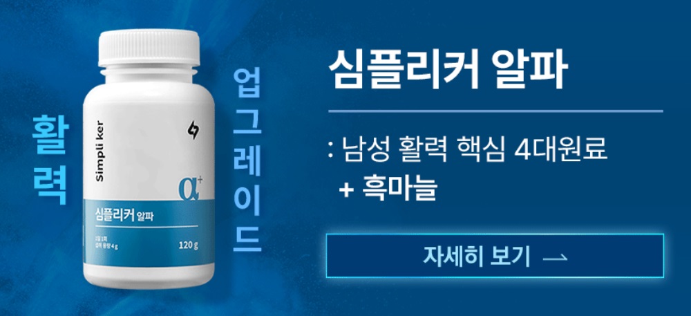 또한 더 강한 효과를 원하신다면 심플리커 기본보다는 알파, 맥스 제품 구입으로 더 높은 함량+흑마늘, 특허 원료를 배합한 조합이 들어있어 효능이 더욱 뛰어날 것입니다. 기본 제품도 괜찮지만 개인적으로는 알파, 맥스 제품을 더욱 추천 드리는 바입니다.