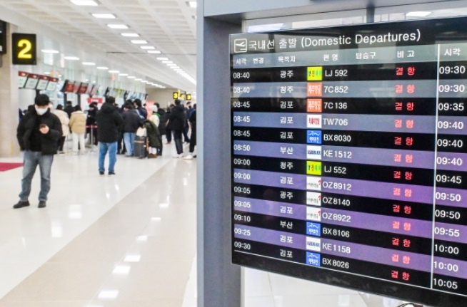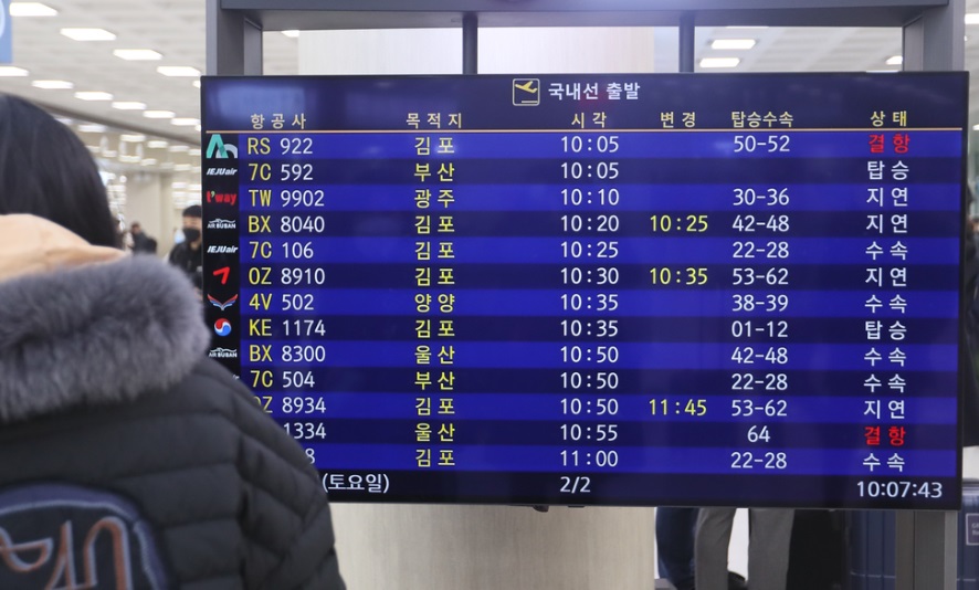 설 연휴 마지막 날인 24일 오전부터 역대급 대설·강풍 등 악천후로 인해 제주공항에 항공기 전편 결항 사태가 발생했다. 명절을 맞아 제주를 찾은 4만여 명의 귀경객·관광객들은 제주 항공기 결항으로 인해 발이 묶이며 근처 숙소를 잡거나 공항에서 대기하고 있는 실정이다.