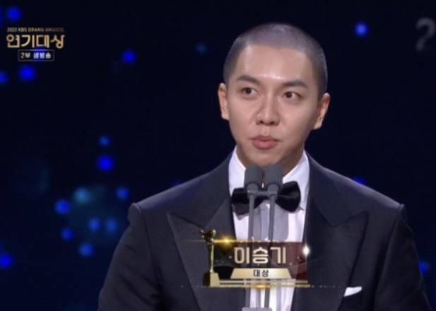 2022 KBS 연기대상' 최근 소속사와 법적 다툼 중인 이승기가 삭발 슈트 차림으로 등장했다. 이와 관련 이승기는 "심경의 변화가 아니"라면서 이승기 삭발 이유를 직접 밝혔다.